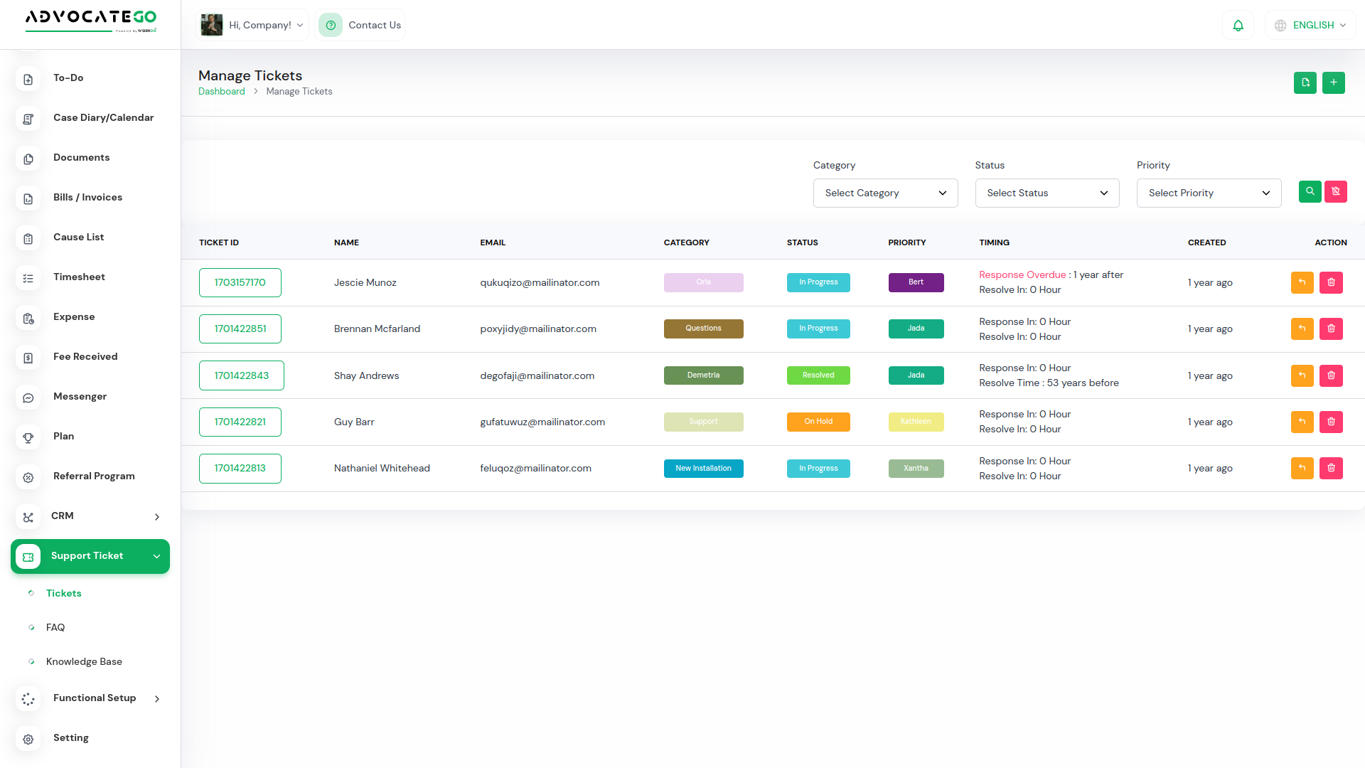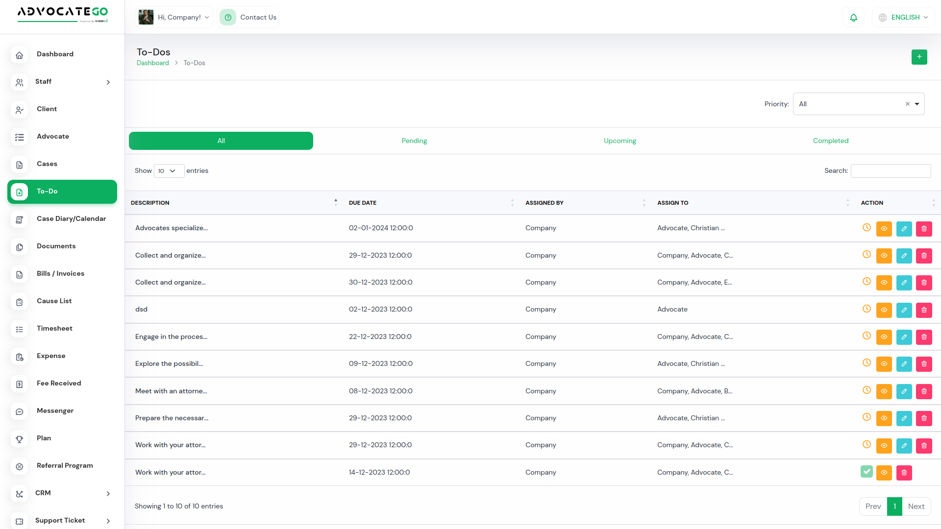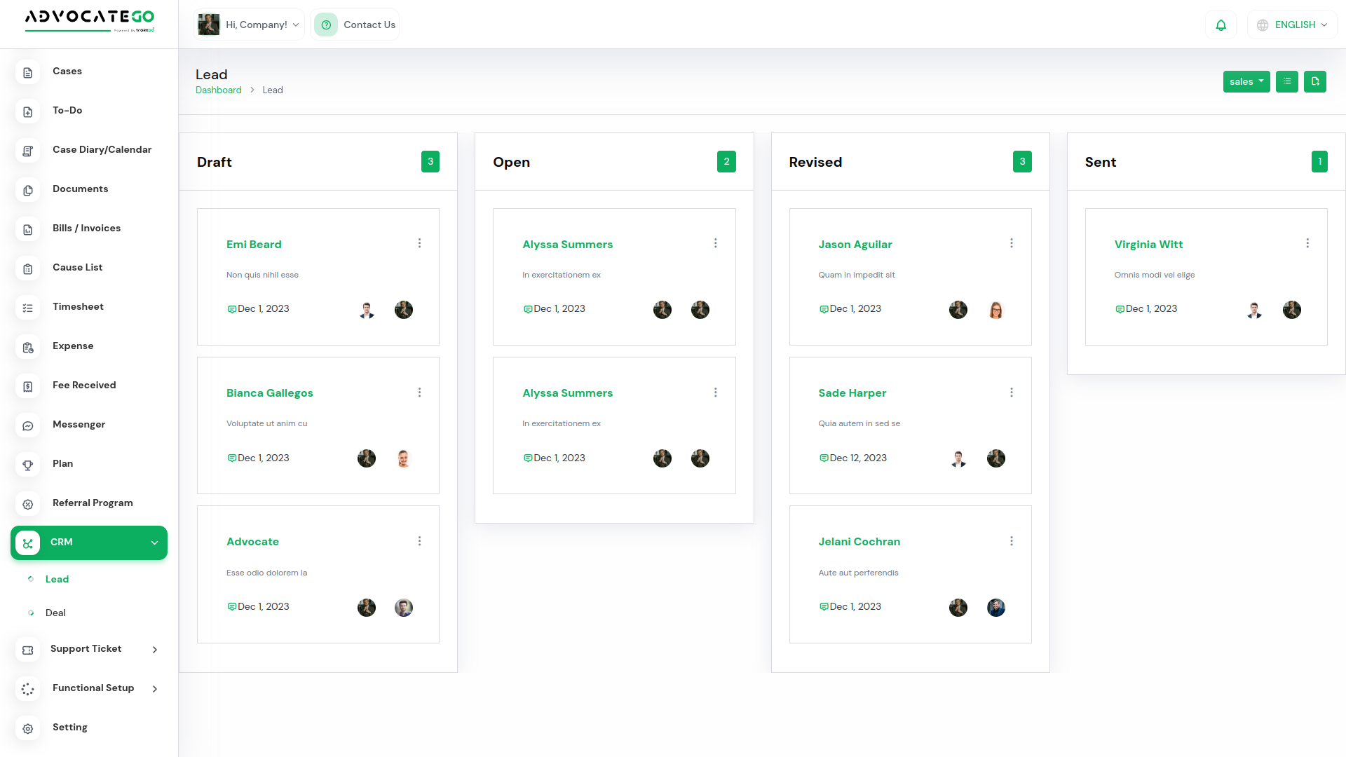 By purchasing this plan, companies can manage a maximum of 1 users and a maximum of 1 advocates.