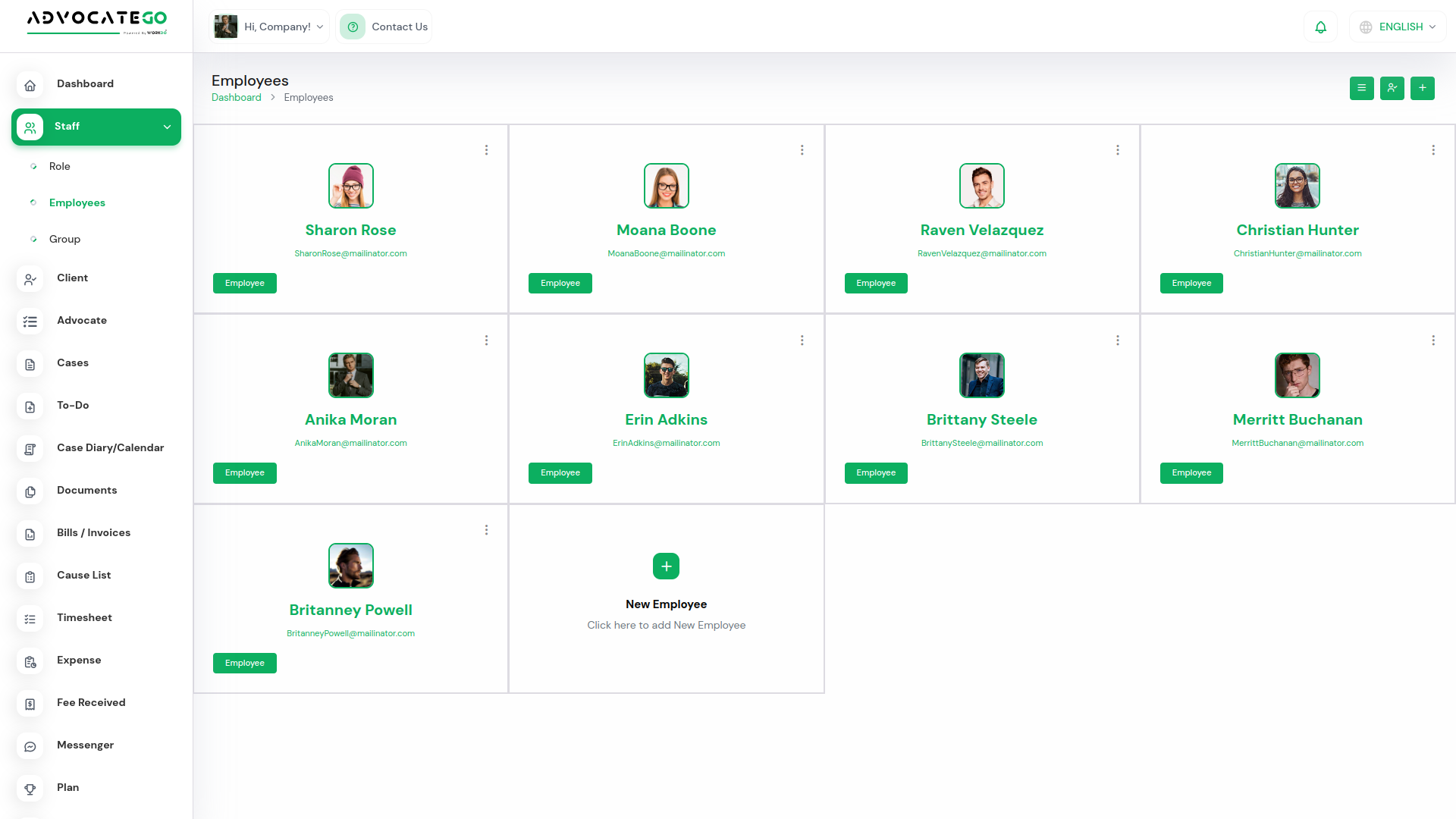 By purchasing this plan, companies can manage a maximum of 5 users and a maximum of 5 advocates.